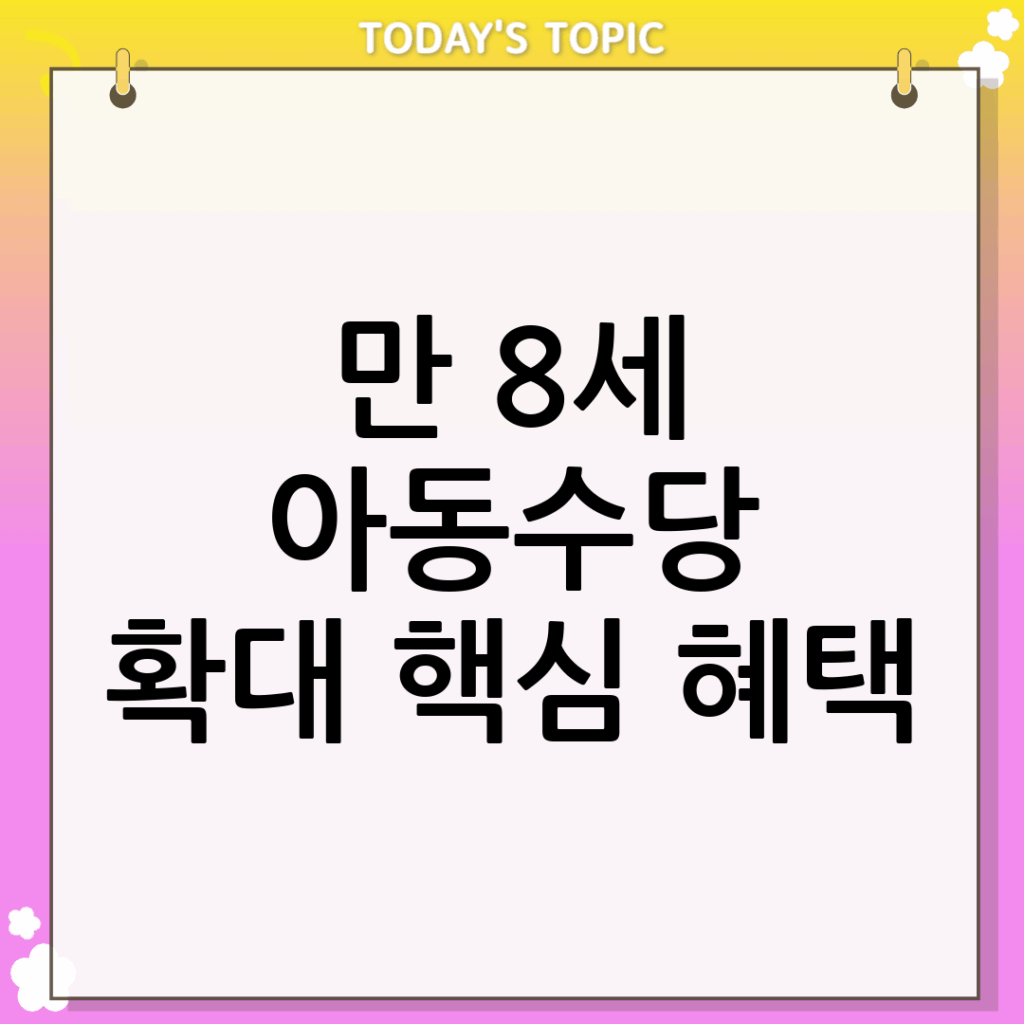 아동수당 지급대상 확대는 우리 아이들의 행복한 미래를 위한 투자입니다. 만 8세까지 아동수당 혜택을 받을 수 있게 되면서, 더 많은 가정에서 양육 부담을 덜고 아이들에게 더 나은 환경을 제공할 수 있게 되었습니다. 아직 아동수당을 신청하지 않으셨다면, 지금 바로 신청하여 소중한 혜택을 누리세요! 아동수당은 우리 아이들의 건강한 성장과 밝은 미래를 응원합니다.