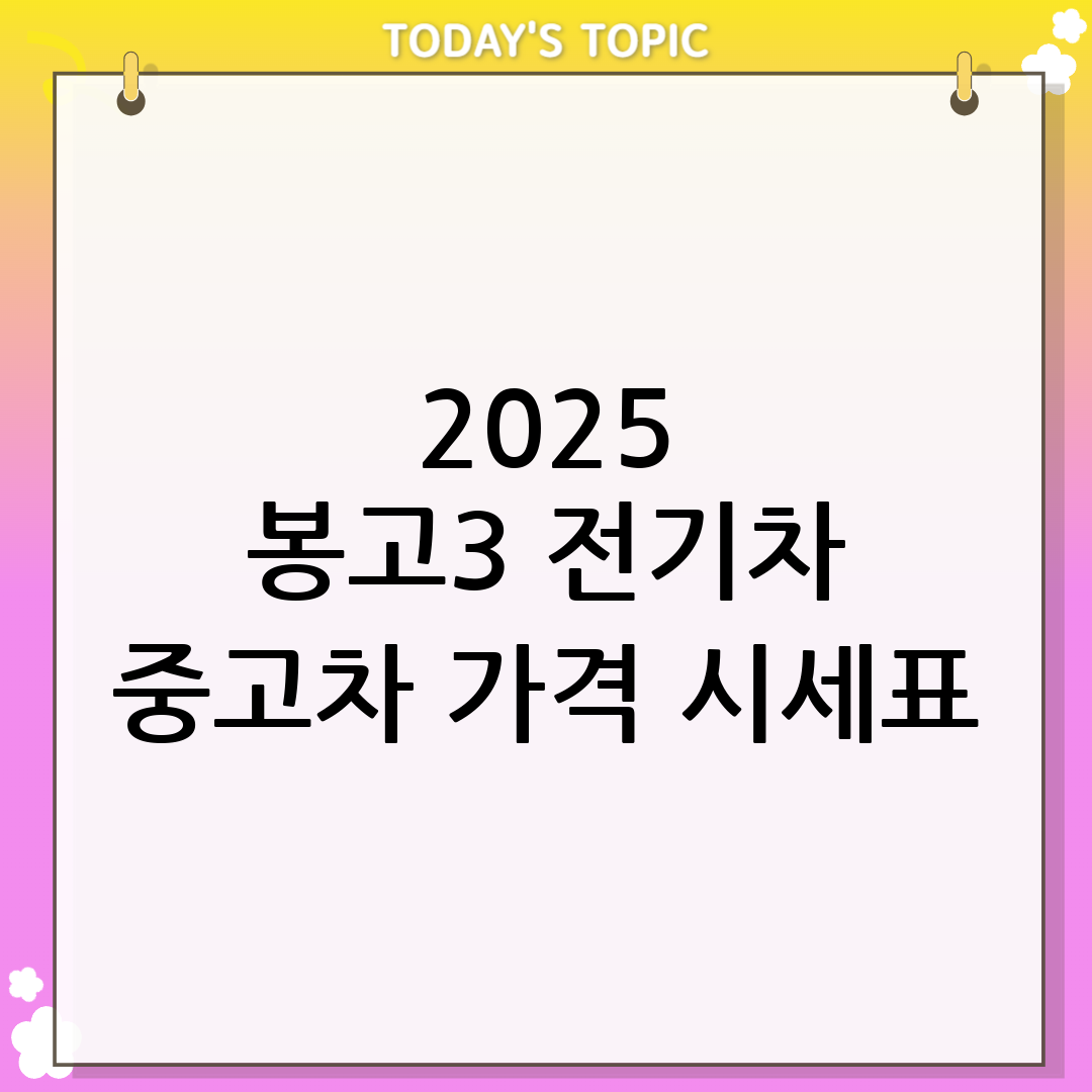 2025 봉고3 전기차 중고차 가격은 다양한 요인에 따라 변동됩니다. 다음은 주요 가격 결정 요인과 시세 분석입니다.